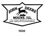 The next change was registered in 1936 after the company's standardization committee noted a need to "to better adapt the trademark for stenciling on products." The deer became a solid silhouette removing all the detail from its predecessor. This change, combined with the outstretched legs, provided a stronger, more recognizable profile. This period marked the height of sales for the model A, B, and D tractors and Deere was aggressively trying to dominate the market. A uniquely shaped angular border was added around the leaping deer. The antlers were changed slightly and the words, "John Deere, Moline, Ill." remained in the same position but were made somewhat bolder. The slogan below it all stayed unchanged.