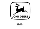A more clean-cut, contemporary look marked the revision in 1968. A company memo noted, "the new trademark is in keeping with the progress being made throughout all divisions of the Company... it provides for better reproduction and greater readability under a wider range of usage." The design was modernized and streamlined to show a straight-side silhouette with just two legs, instead of the four, and one four-point rack of antlers. The "John Deere" logotype was changed using a hand-modified version based on the Helvetica font. The width of the ellipse border was narrowed and the size ratio of the deer inside it increased.